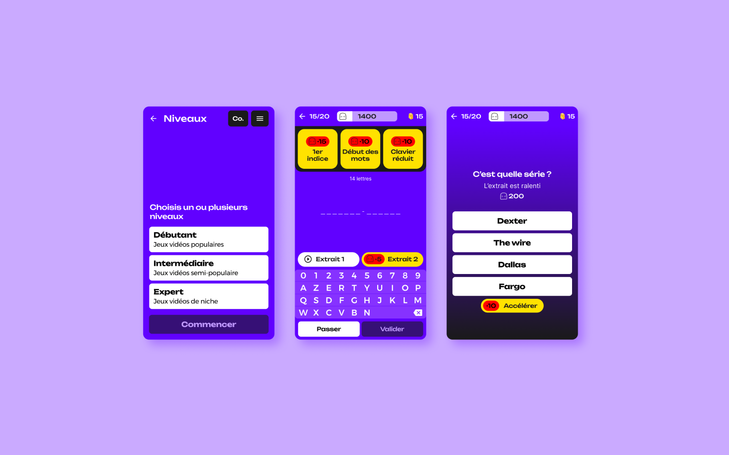 Co-fondation d’une application de blind test en collaboration avec un développeur, combinant nos compétences pour offrir un moment de divertissement en solo ou entre amis.