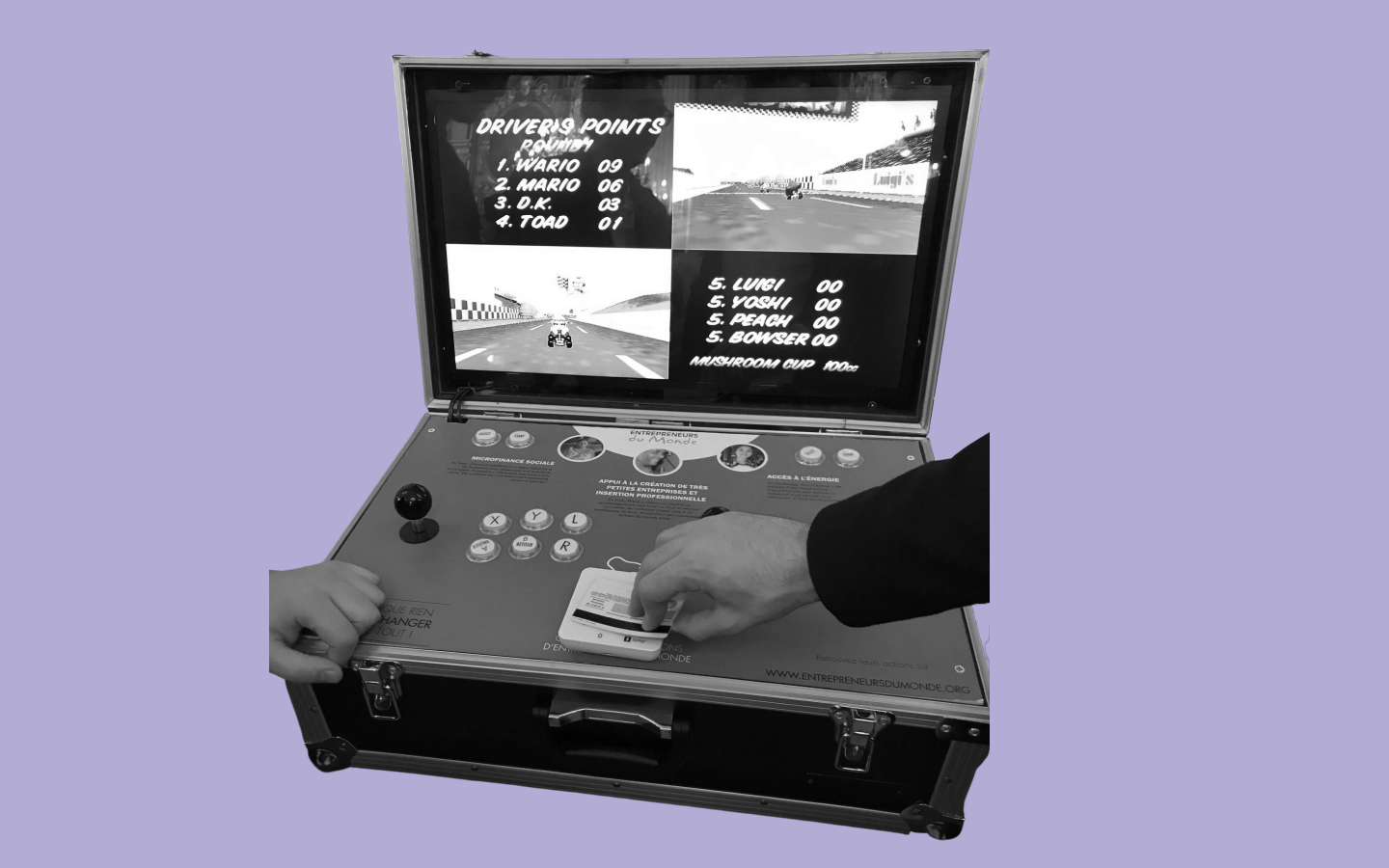 Je suis intervenue sur la conception de l’interface de la borne d’arcade solidaire avant sa commercialisation. Mon objectif était de permettre aux utilisateurs de faire un don tout en se divertissant grâce à des jeux rétro.